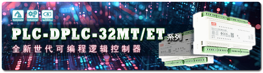 明纬开发的可编程逻辑控制器— PLC-DPLC-32MT/ET系列,软韧体设计符合国际标准IEC61131-3。该系列采用Open PLC Editor编程软件,支持5种编程语言,有多元库函数可调用,并支持在线调试。此外,其支援MODBus通讯界面,可远程监控现场设备运行与对接其他通讯设备;采模组化设计,MT/ET系列支持输入16点/输出16点,支持丰富的/IO口扩展,最多可扩展7台,输入输出最大256点。PLC-DPLC系列具备4组同时输出最高100KHz脉冲,内置时钟功能可执行时间控制。适用于工业自动化、SMT产线自动化、智慧农业、电梯控制、楼宇自动化控制…等应用场景。